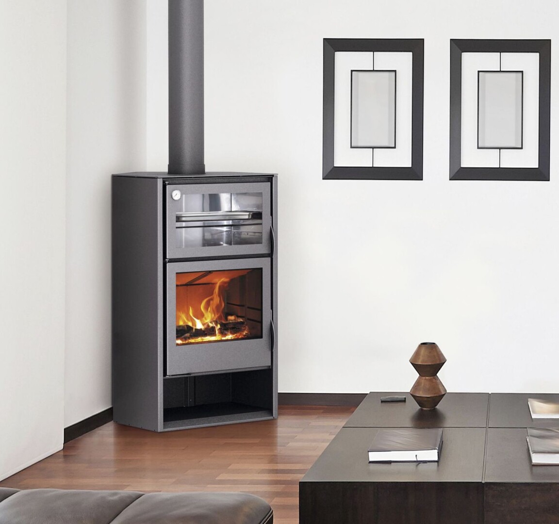 Carbel Atlas -takka, jossa on paistonuuni, ei vain lämmitä kotiasi, vaan myös herättää ruoanlaiton taikuuden avoliekillä. Se mahdollistaa merkittäviä säästöjä kaasun ja sähkön kulutuksessa, koska se kattaa sekä lämmitys- että ruoanlaittotarpeet yhdellä puunpolttoprosessilla. Teräksellä ja lämpömateriaalilla vuorattu tilava polttokammio parantaa suorituskykyä ja energiatehokkuutta. Voit hallita palamista maksimaalisesti, sillä voit säätää ensiö- ja toisiopainetta yhdellä vivusta. Ruostumattomasta teräksestä valmistetussa uunissa on tulenkestävä pohja ja lämpömittari, mikä mahdollistaa tarkan lämpötilan säätelyn ruoanlaitossa. Tulenkestävä sisävuori on irrotettava puhdistuksen helpottamiseksi, ja mukana tulee uunipelti. Lisäksi on valinnainen tuuletussarja ja kulmaversion ylälevyt. Takan minimalistinen ja esteettinen muotoilu sulautuu saumattomasti mihin tahansa sisustukseen.
