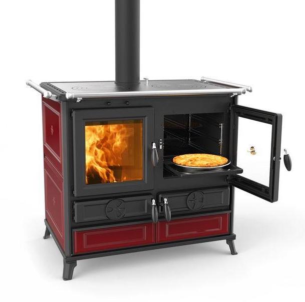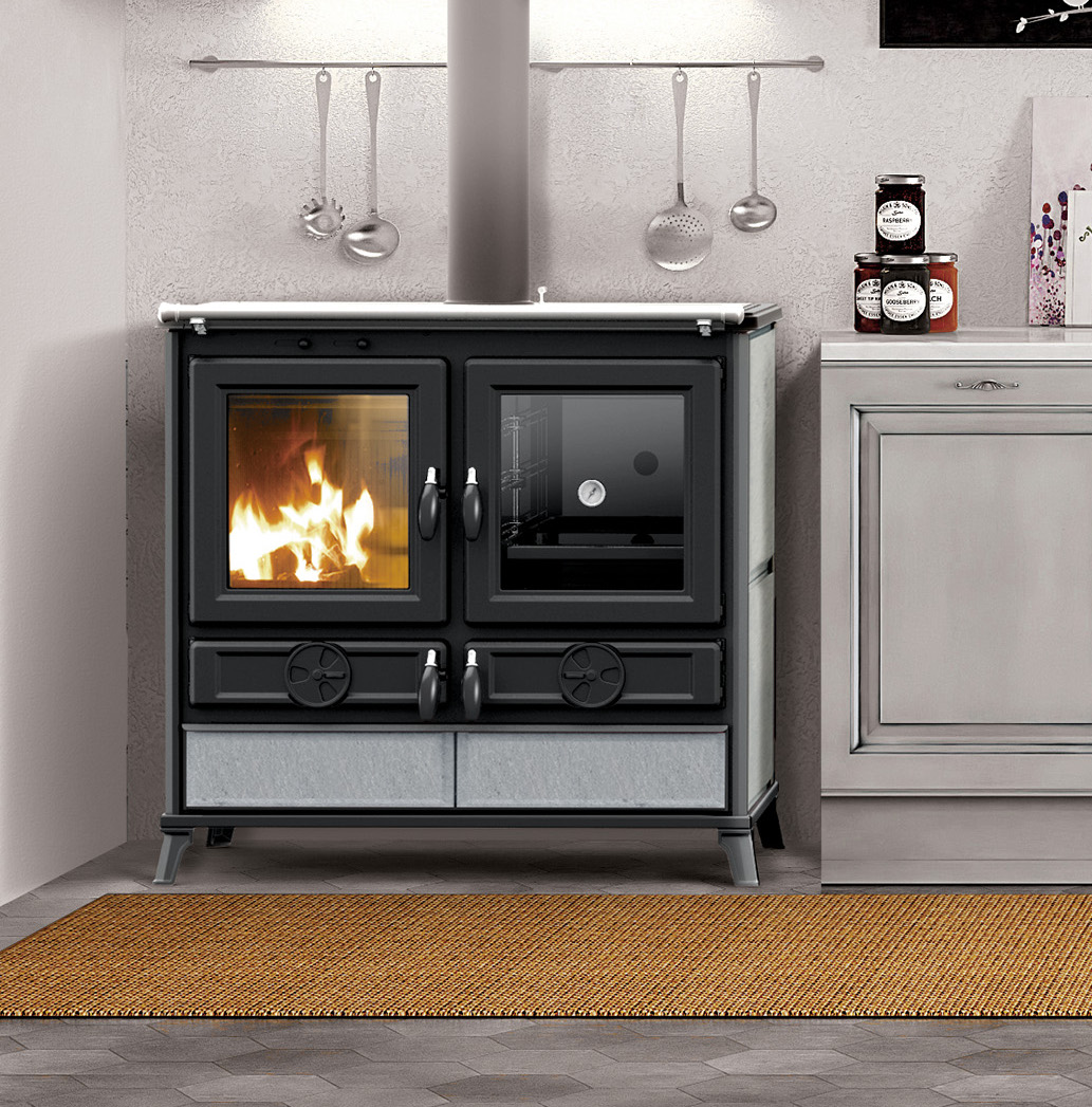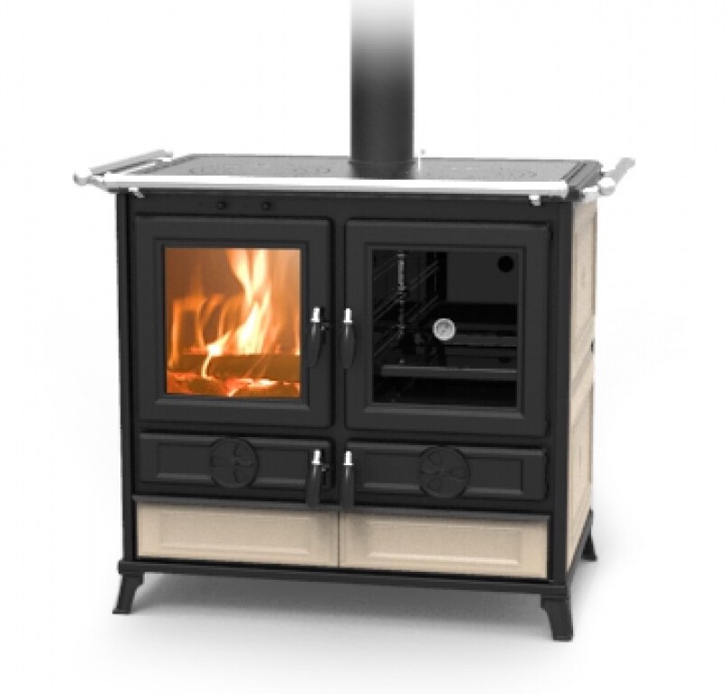 Сделанная в Италии кухонная плита на дровах Thermorossi Viola Evo сочетает в себе традиционную кухню, современный дизайн и высокую эффективность. Изящные украшения, покрытый плиткой из горшечного камня или майолики, обогащают просторный вид на огонь, делая его настоящей жемчужиной в любом доме. Устройства управления первичным и вторичным воздухом обеспечивают оптимальное сгорание. Полированная чугунная плита с чугунными кольцами обеспечивает превосходные результаты приготовления, а эмалированная духовка объемом 43 литра оснащена термометром и противнем. Внизу духовки есть место для поддержания еды в тепле. Аксессуары можно удобно хранить в удобном ящике, а умные ножки облегчают поддержание чистоты вокруг плиты. В комплект входит фронтальный поручень, боковые поручни доступны в качестве аксессуаров. Дровяная плита Thermorossi Viola Evo элегантна, долговечна и эффективна, она привносит на вашу кухню тепло и уют настоящей дровяной печи, одновременно обеспечивая универсальность приготовления пищи.