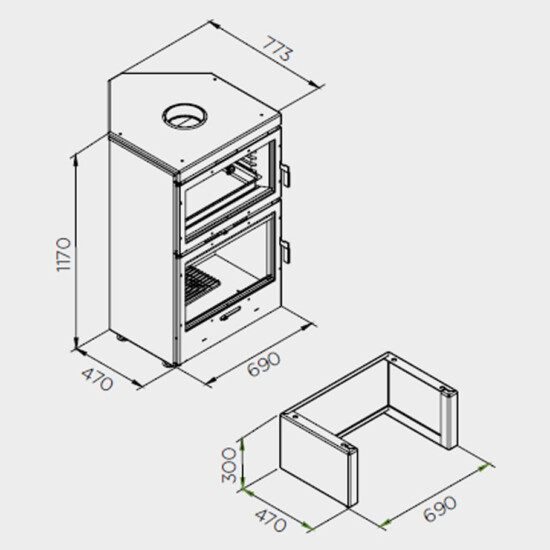 Nurgakamin Calor LL-1180-2 on varustatud 55 liitrise küpsetusahjuga, nii saate hõlpsalt küpsetada samal ajal kui kaminat kütate. Küpetusahjul on termomeeter, samuti on kaasas ahjuplaat. Lisaks on kaminal mugav tuhasahtel. Kamin on valmistatud kvaliteetsest terasest, kaetud kuumakindla pulbervärviga. Primaar- ja sekundaarõhu juurdevoolu reguleerimine tagab õhu täpse doseerimise ja kauakestva põlemise. Kamina põlemiskamber on vooderdatud heledate vermikuliitpaneelidega. Lisavarustusena saadaval kamina alus/kõrgendus. Tulesära ja küpsetiste aroomid loovad imelise atmosfääri ning annavad interjööri soojust ja mugavust.