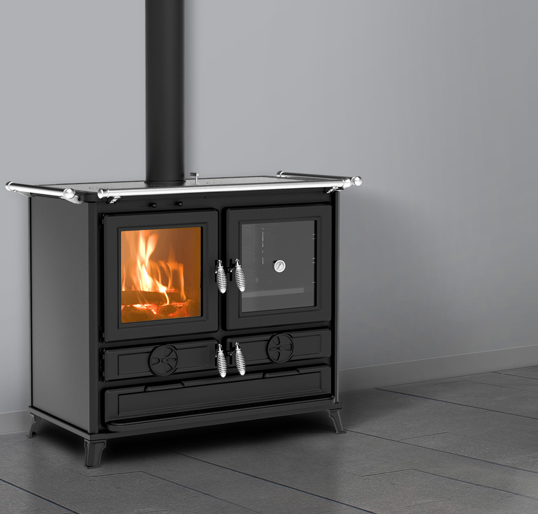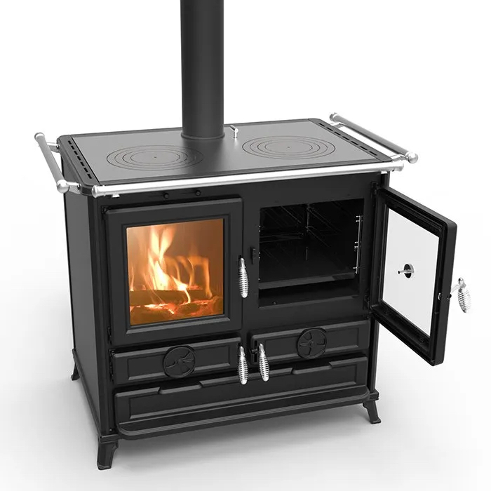 Itaalias valmistatud kvaliteetne puuküttega pliit Thermorossi Klara Evo ühendab endas suurepärase küttevõime, tõhusad toiduvalmistamise funktsioonid ja elegantse disaini. Oma rikkaliku funktsioonide valiku ja tugeva konstruktsiooniga pakub Klara Evo usaldusväärset ja mugavat toiduvalmistamise kogemust. Primaarsed ja sekundaarsed õhureguleerimisseadmed tagavad optimaalse põlemise. Poleeritud malmist keeduplaat koos malmrõngastega tagab suurepärased küpsetustulemused ning 43 l mahutavusega emailitud ahi on varustatud termomeetri ja küpsetusplaadiga. Ahju allosas on ruum toidu soojas hoidmiseks. Tarvikuid saad hoida käepärases sahtlis ning nutikad jalad hõlbustavad pliidi ümbruse puhtana hoidmist. Komplekti kuulub eesmine pliidiraud, külgmised pliidirauad saadaval lisavarustusena. Thermorossi Klara Evo puuküttega pliit on stiilne, kuid praktiline lisand igasse kööki.