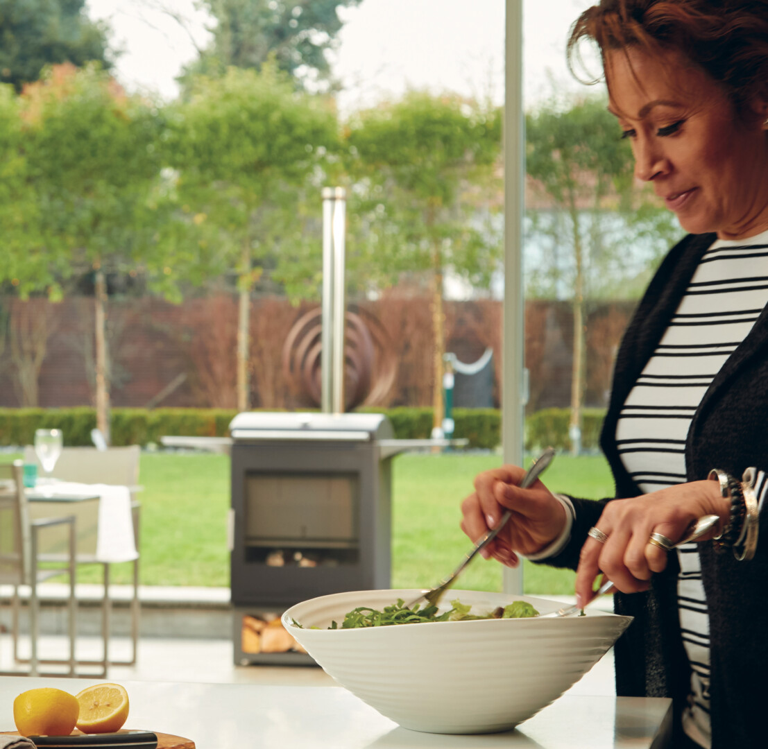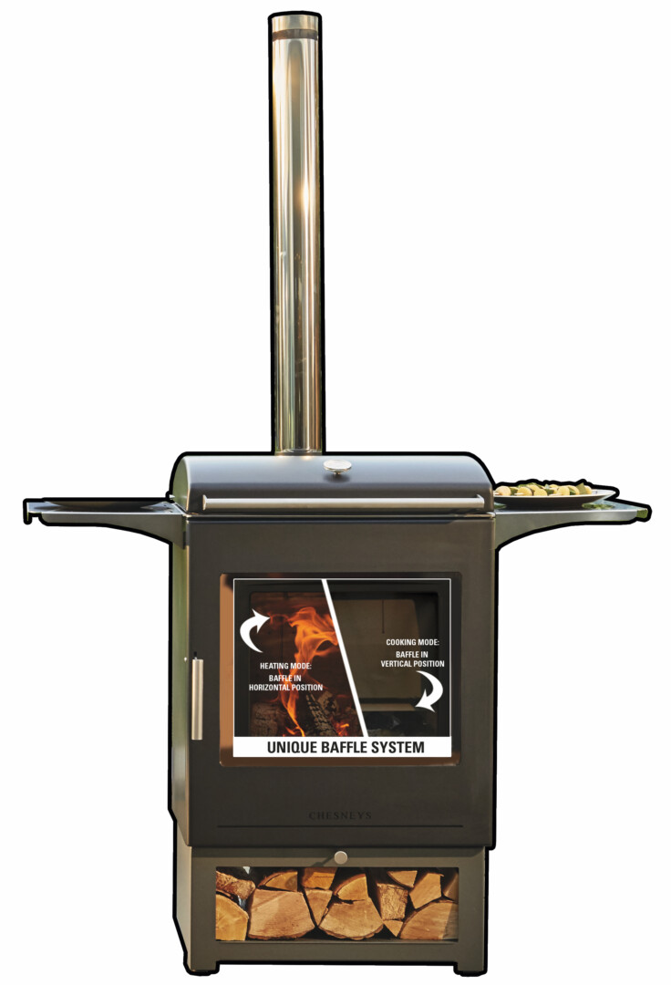 - Integreeritud deflektori abil saab kamina ümber lülitada toiduvalmistamise režiimile