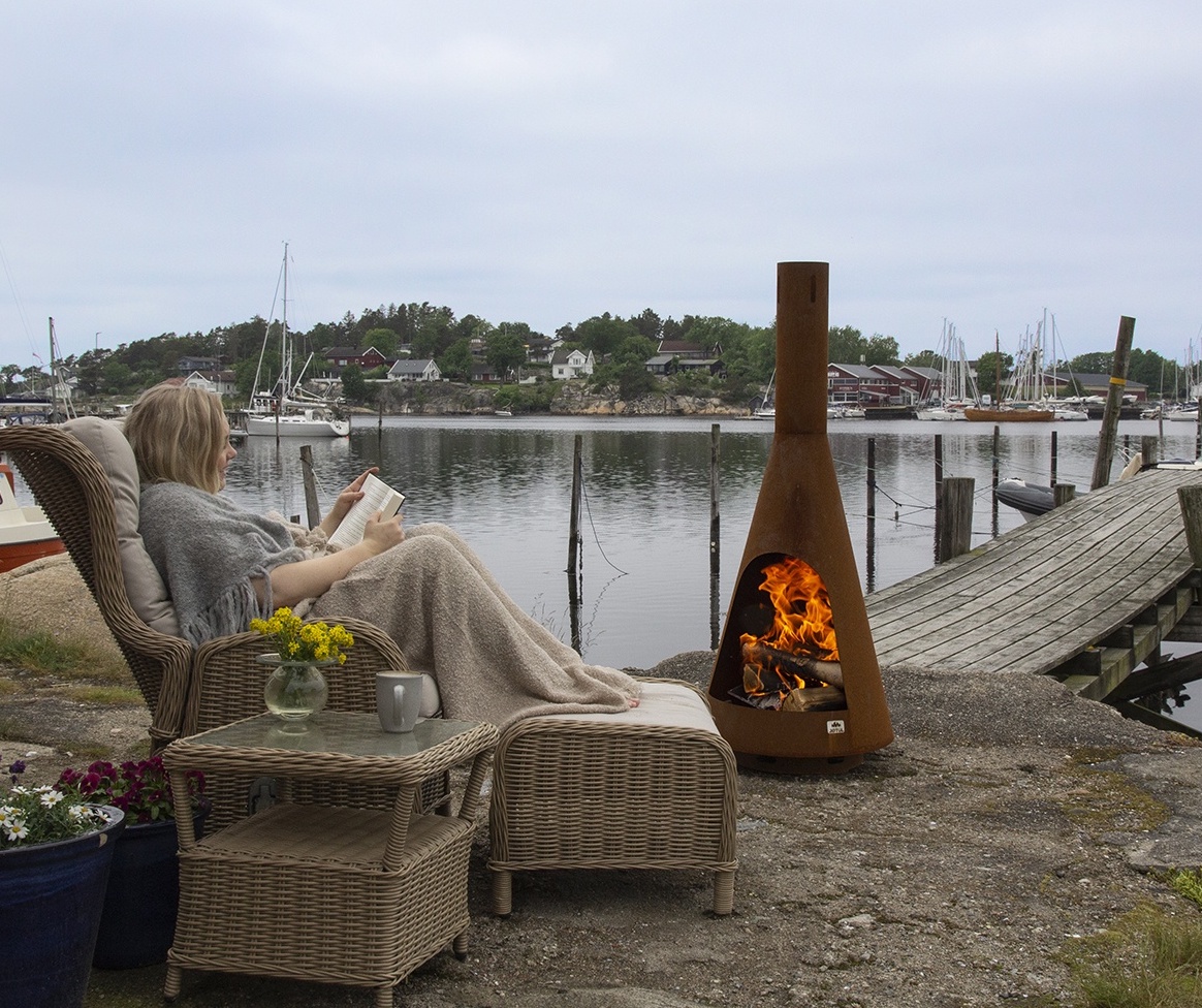 Süüdake oma välikamin Jotul Froya, et luua hubane õhkkond ning koguge pere ja sõbrad õue olenemata temperatuurist. Pole vaja kõhelda välikamina kasutamisega isegi siis, kui temperatuur langeb alla nulli. Jotul Froya on loodud selleks, et muuta teie väliala veelgi atraktiivsemaks ja luua autentne keskkond ning selle soojus ja valgus loovad kutsuva meeleolu kõigis oludes. Kamin on valmistatud Corteni terasest, millele tekib lühikese aja jooksul “kare” roostes pind. See roostes kiht kaitseb kaminat igat tüüpi ilmastikutingimustes aastaringselt. Corteni terast kasutatakse ka hoonete fassaadidel, et saavutada roostetanud välimus.